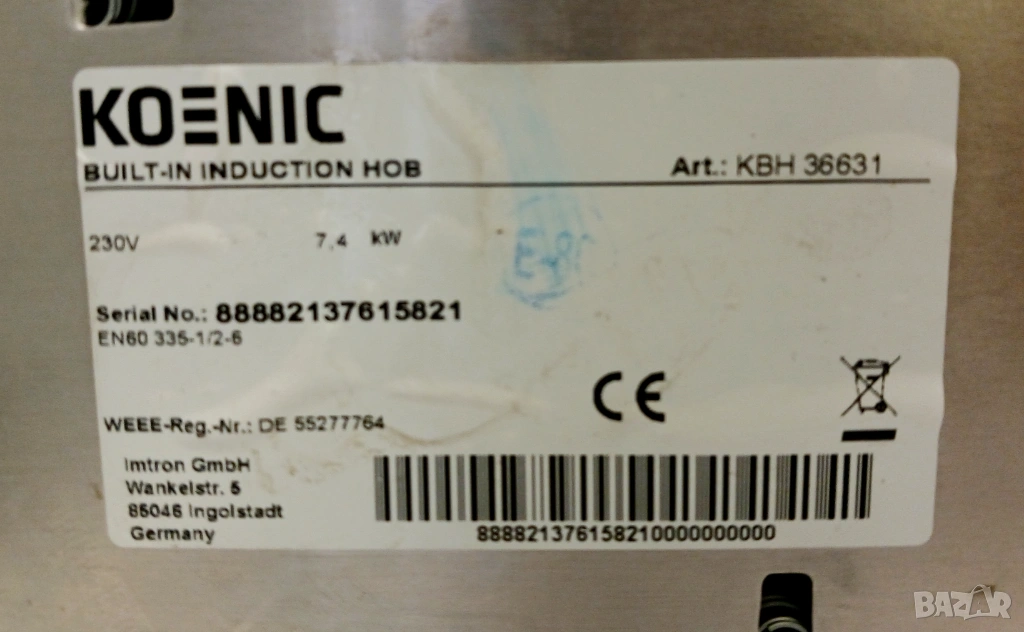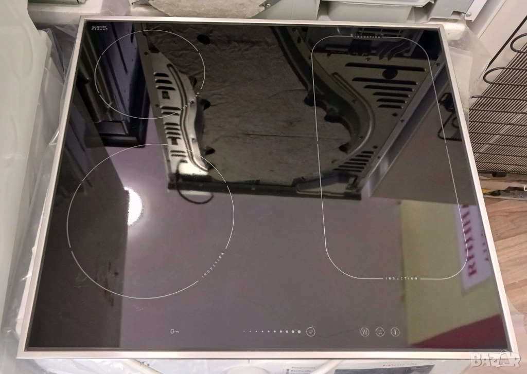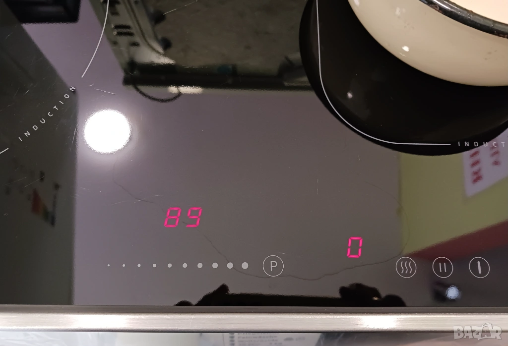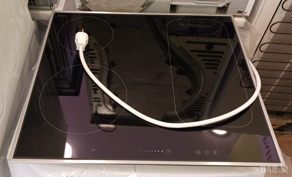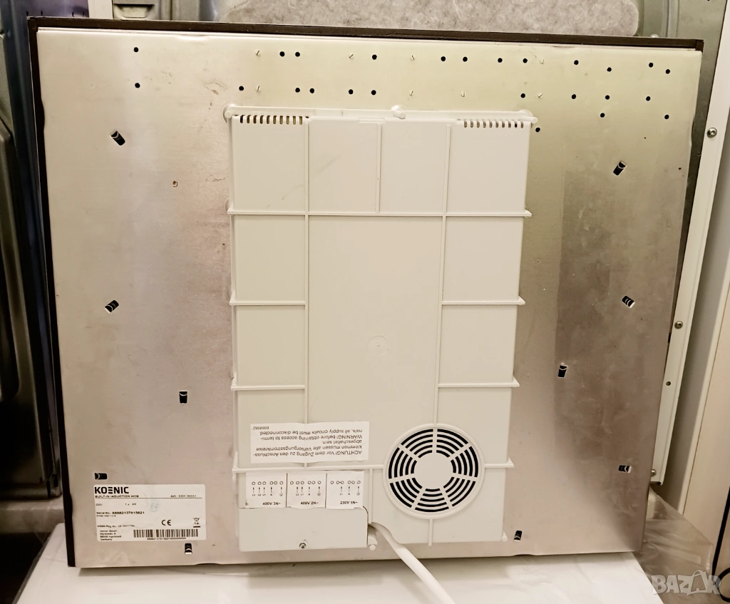 Индукционен плот за вграждане KOENIC, произведен в Германия. Има 4 зони за готвене / котлоните са с по 9 степени / сензорно управление на бутоните / таймер / заключване за деца и бутон включено/изключено и метален кант. Размери - външни - 57,5 х 50,5 см