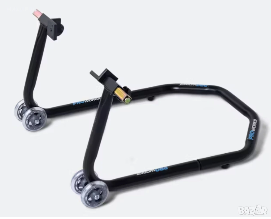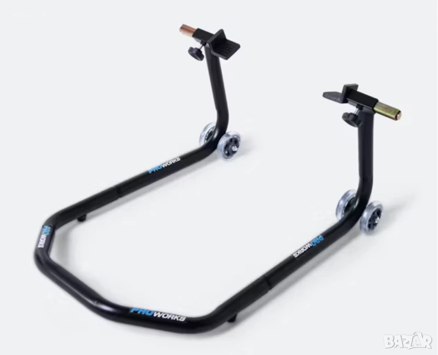 Нова задна стойка подходяща за всички мотори с тегло до 250кг. Стойката държи мотора повдигнат и стабилен улесняваща работата по него било то за ремонти или най-елементарно смазване на веригата.