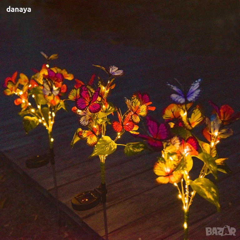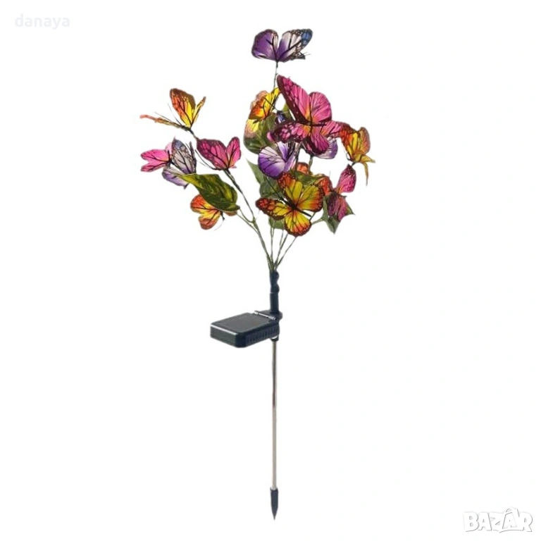 Соларна градинска лампа с пеперуди, декоративно LED осветление за двор и градина, 65 см височина – ефектно решение за създаване на уютна и приказна атмосфера на открито.