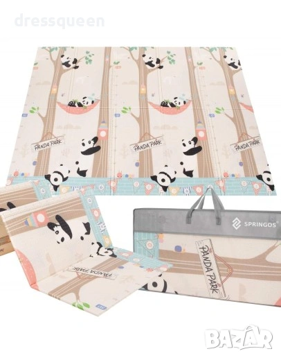 Вашето мъниче ще открие цял нов свят върху това цветно и меко двулицево меко килимче за игра XPE. От едната страна ще го посрещне симпатично Мече с балони, а от другата – игриви Панди в парка. Това двулицево меко килимче за игра XPE е перфектният спътник при прохождане, благодарение на своята мека и стабилна повърхност. Водоустойчивото покритие позволява бързо почистване на всяко разлято мляко или сок само с една салфетка. Сгъваемият механизъм го прави лесно за прибиране, без да заема излишно място във Вашия дом. Вграденият ростомер Ви дава възможност да запечатвате спомени, докато измервате колко бързо расте Вашето дете.
