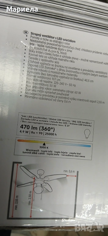 Вентилатор за таван с LED лампа → Обява 53643571