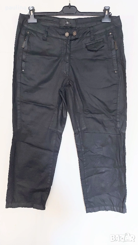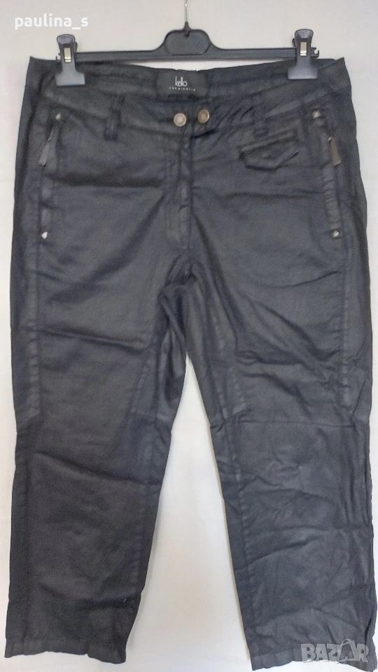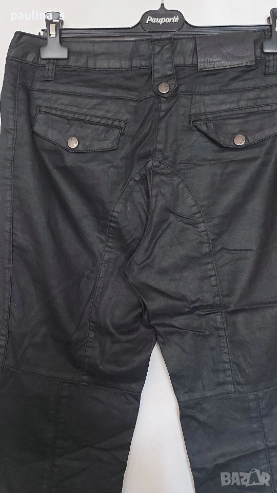 1️⃣. VINTAGE / "Kello" / Дамски дънки с кожен ефект. Цената е крайна, без пазарлъци 20 евро. 2XL / 3XL - "Kello" - Дамски дънков панталон, модел брич, черни. Платът е еластичен и промазан има кожен ефект. Моделът е отзад с платка като ездачески брич - хит на годината, брандирани копче и кабси. Крачолите са прави завършват с ципове, джобовете са с ципове също. Липсва 1 тик-так копче, съобразена цена! Качество и екстравагантен стил, гарантирани от дизайнерската марка, произвеждаща само бутикови и лимитирани серии. Без други дефекти.
