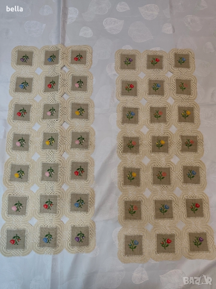 Ръчно бродирани 2 карета (тишлайфери)с плетена дантела