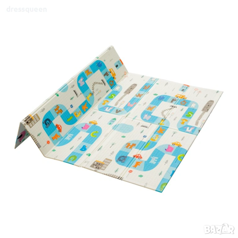 Нашето меко килимче за игра 180x200x1 см е най-добрият избор за Вашето лазещо или прохождащо бебе. Благодарение на големия си размер, то покрива почти целия под, като го превръща в мека и топла зона за игри. Двете лица – "Градски път" и "Морски свят" – гарантират, че на детето никога няма да му омръзне. Дебелината от 1 см изолира перфектно от студените настилки и омекотява стъпките на Вашето мъниче. Килимчето е леко, сгъваемо и идва с удобна чанта, за да бъде с Вас дори по време на почивка или гостуване.
