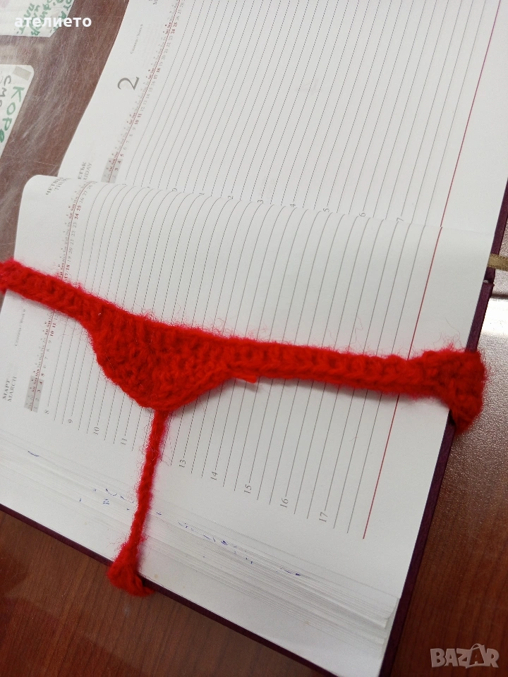 книгоразделител плетена прашка, забавен подарък за любителите на книги ,плетиво → Обява 53643755