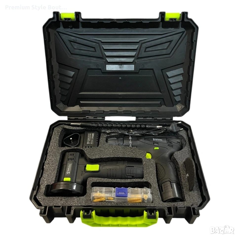 Комплект акумулаторен ударен винтоверт + мини ъглошлайф STAHLMAYER 24V – мощност и свобода без кабели Професионален комплект STAHLMAYER 24V, включващ акумулаторен ударен винтоверт и мини безчетков ъглошлайф, събран в удобен куфар с две батерии и зарядно. Идеално решение за ремонт, монтаж, строителство и сервизни дейности – у дома или на терен. Този комплект е създаден за хора, които търсят надеждност, мобилност и висока производителност в компактна форма. Основни предимства: • Марка STAHLMAYER – доказано качество • Два мощни акумулаторни инструмента в един комплект • 24V Li-ion батерии – дълъг живот и бързо зареждане • Без кабели – пълна свобода на работа • Компактен куфар за пренасяне и съхранение • Подходящ за професионална и домашна употреба Мини акумулаторен безчетков ъглошлайф STAHLMAYER 24V Лек, компактен и изключително удобен за работа с една ръка. Идеален за рязане и шлайфане на метал, пластмаса, тръби и профили. Предимства: • Безчетков мотор – по-дълъг живот и по-малък разход на енергия • LED индикатор за нивото на батерията • Ергономична дръжка • Подходящ за прецизна работа в тесни пространства Характеристики: • Напрежение: 24V • Обороти: 19 500 об/мин • Диаметър на диска: 75 мм • Централен отвор: 10 мм • Резба: M5 • Смяна на диска: със стандартен шестограм • Захранване: Li-ion батерии Акумулаторен ударен винтоверт STAHLMAYER 24V Мощен и надежден винтоверт за пробиване и завиване в дърво, метал и пластмаса. Характеристики: • Захранване: 24V DC • 2 скорости • Обороти: 0-350 / 0-1250 min⁻¹ • Патронник: 0.8 – 10 мм • Макс. въртящ момент: 55 Nm • Степени на въртящ момент: 18 + 1 • LED осветление • Време за зареждане: 3–4 часа Какво включва комплектът: • Мини ъглошлайф STAHLMAYER • Ударен винтоверт STAHLMAYER • 2 бр. Li-ion батерии • Зарядно устройство 220V • 2 режещи диска • Пластмасов куфар Идеален за: • Монтажи и ремонти • Строителни дейности • Домашна работилница • Автосервиз • Мобилни майстори STAHLMAYER – когато искаш мощност, надеждност и свобода на работа в един комплект.