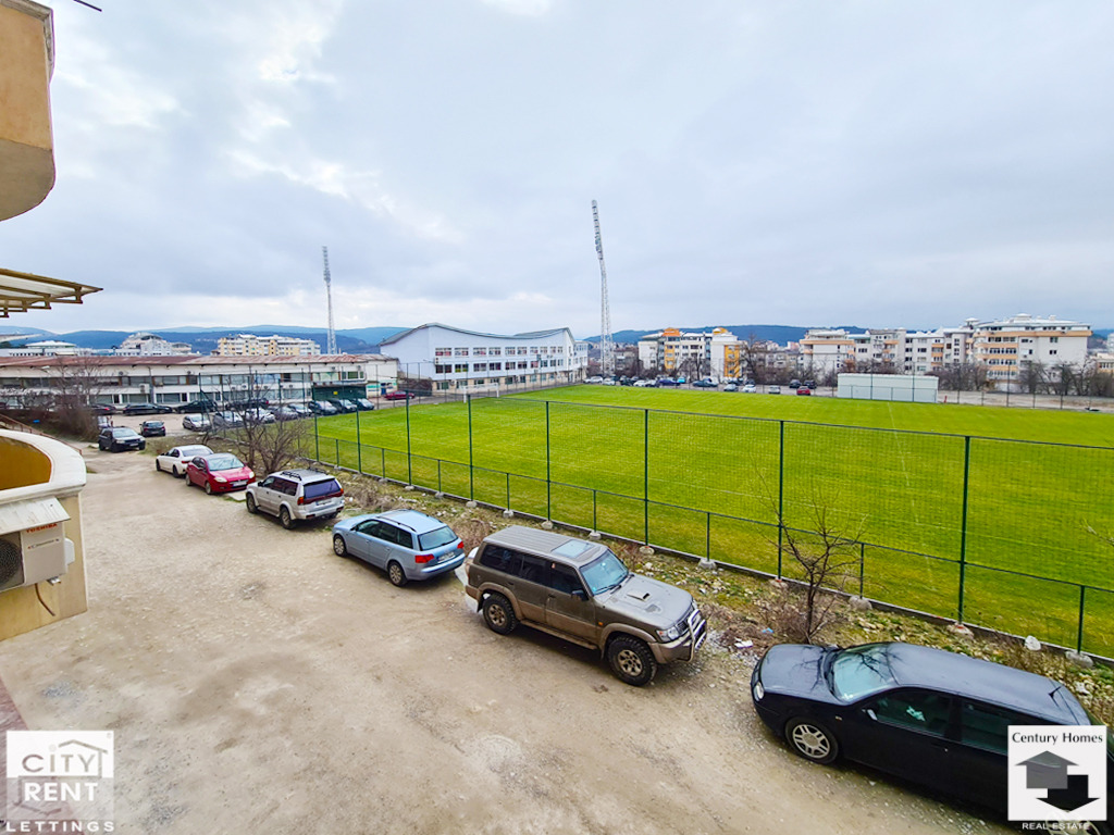 Офис под наем в близост до централната част на Велико Търново, с приятна гледка към стадион и удобен достъп до основни удобства и институции.