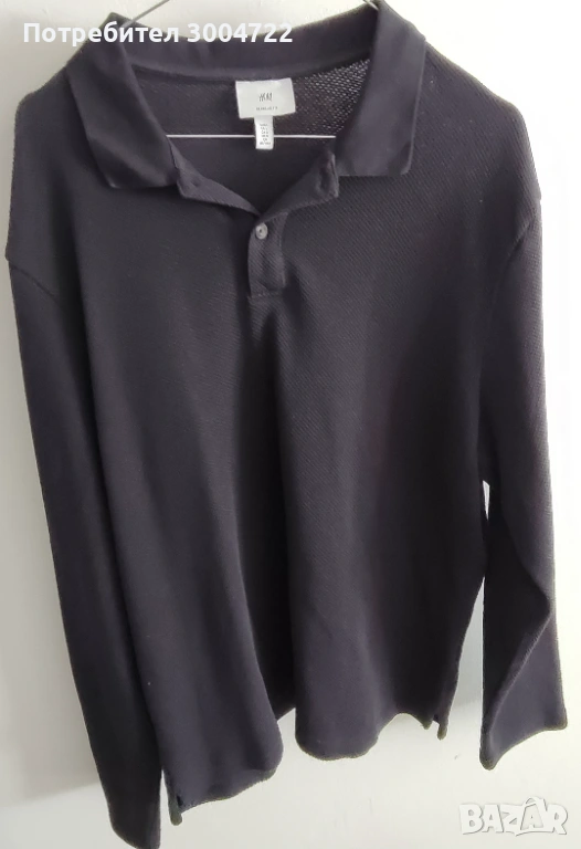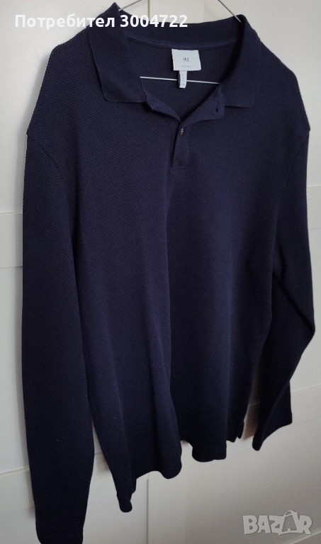 Поло риза с вафлена плетка с три копчета и яка, син цвят, на HM. Материалът е полиестер, размерът е L, но отговаря по-скоро на M. Блузата е чисто нова,не е носена, но етикетът е свален.