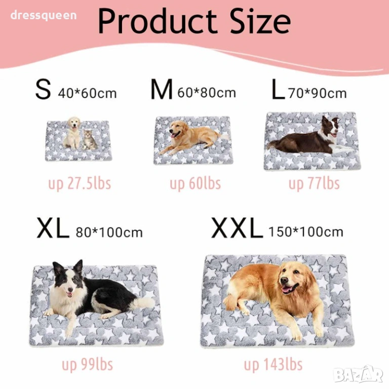 Размер 60 x 80 см: Перфектен за средни котки и кучета.