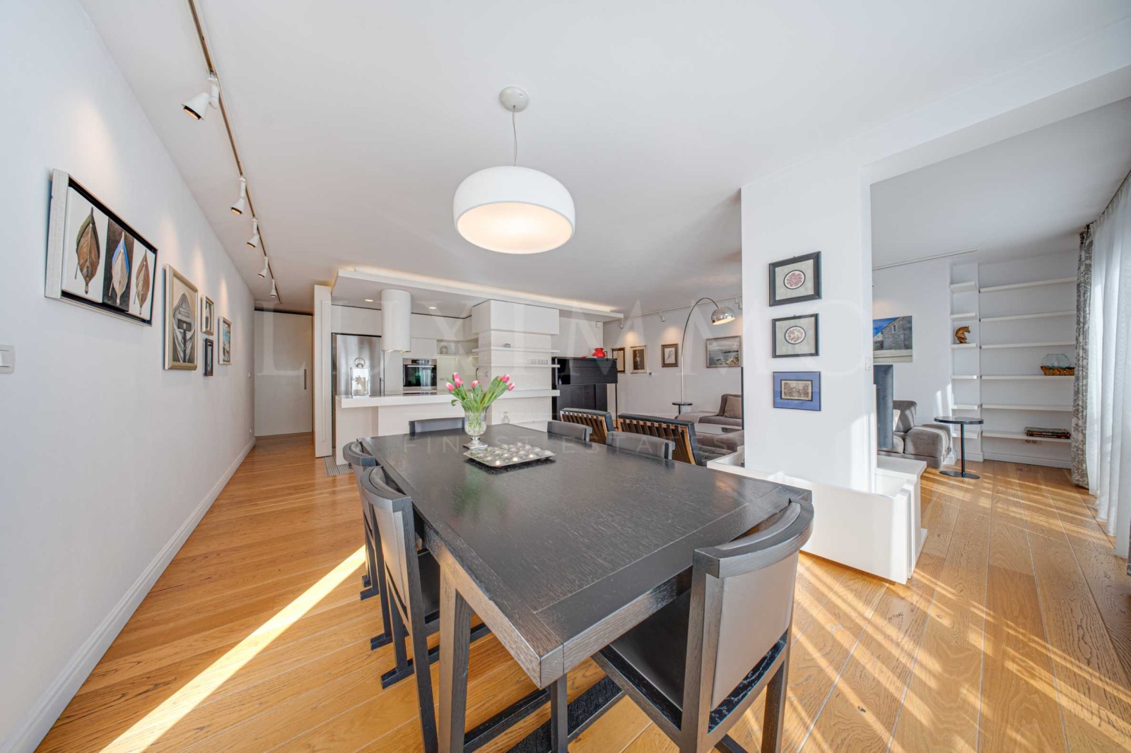 Жилището заема четвърти етаж от общо шестетажната сграда. Изложението е запад/север/юг, с разкриващи се гледки към озеленен вътрешен двор и прилежащата улица. Апартаментът е изпълнен с много стил и елегантност, като са използвани материали от най-висок клас: