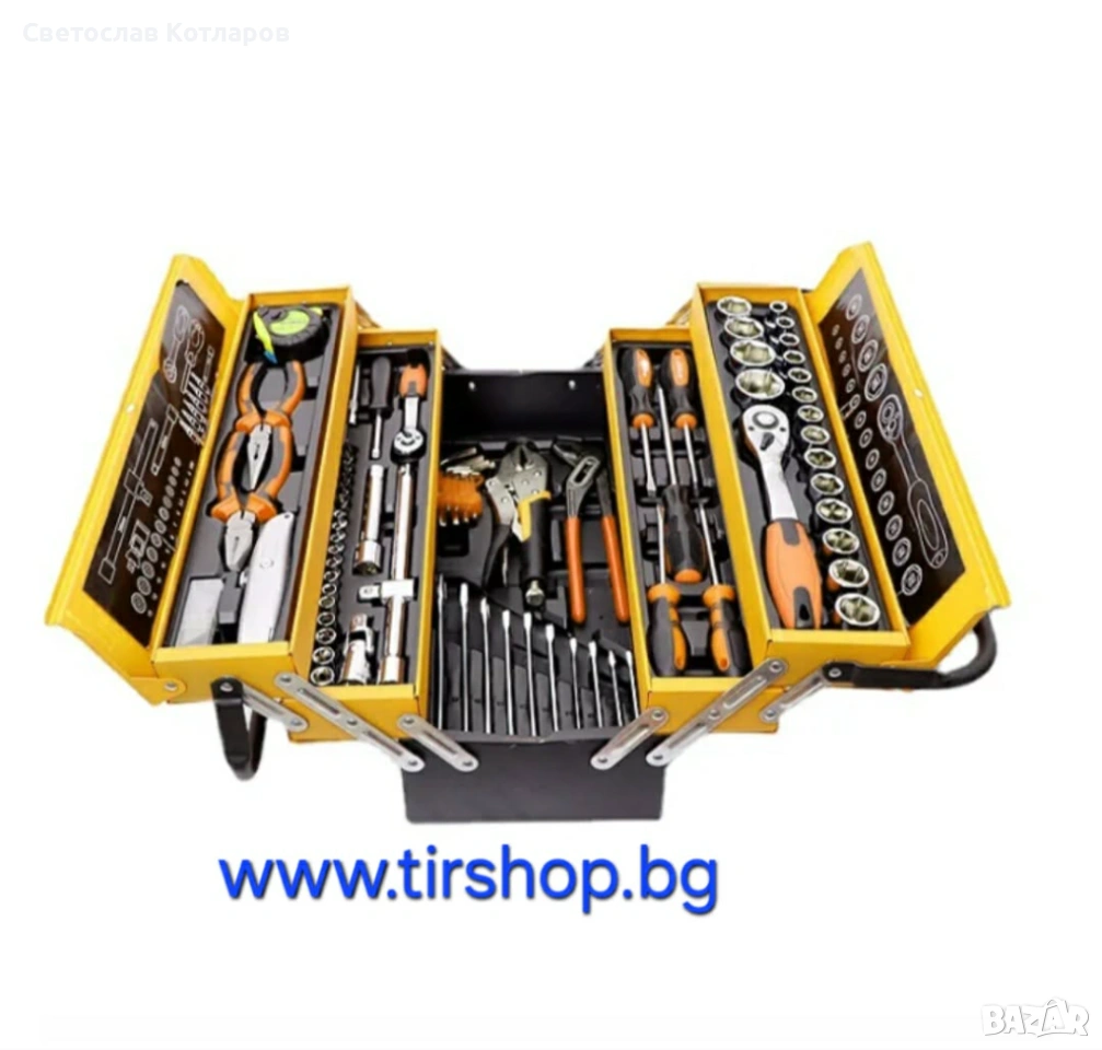 метална кутия за инструменти с три етажа, която осигурява отлична организация и удобен достъп до съдържанието. Конструкцията ѝ се разгъва странично, което позволява бързо и лесно намиране на необходимия инструмент. Подходяща е за професионална и домашна употреба – в работилници, сервизи, гаражи или за личния майстор.