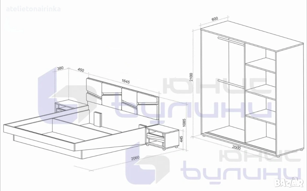 Спалня с нощни шкафчета : 254,5/ 206/ Н108,5 см( височина на касата 40 см);