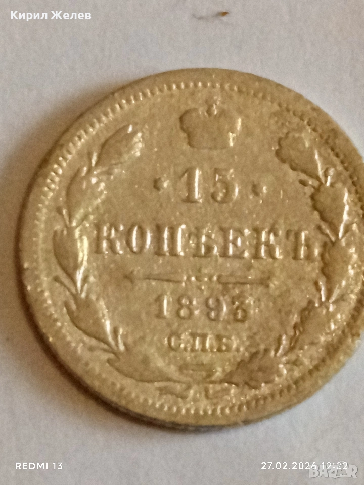 Сребърна монета 15 копейки 1895г. Руска Империя за КОЛЕКЦИОНЕРИ 53213 → Обява 53644325