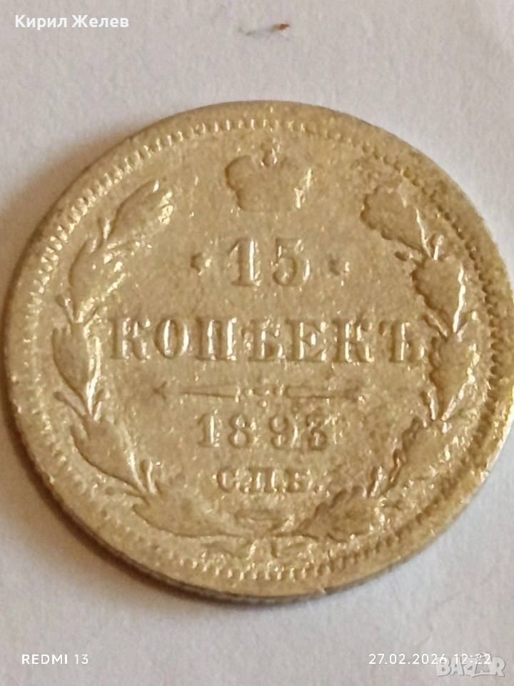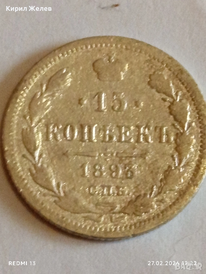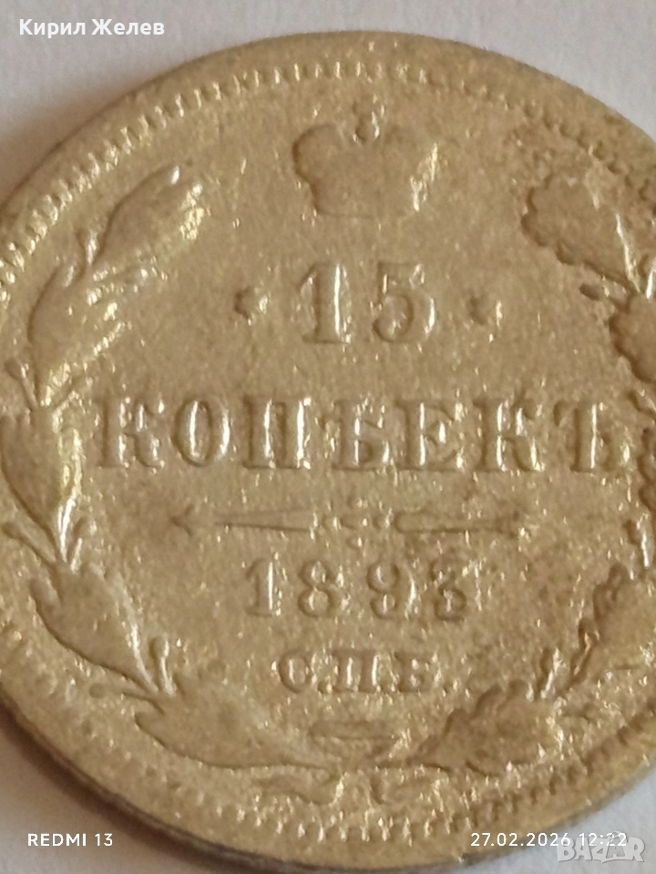Сребърна монета 15 копейки 1895г. Руска Империя за КОЛЕКЦИОНЕРИ 53213