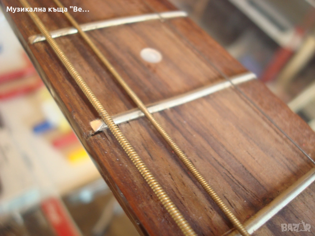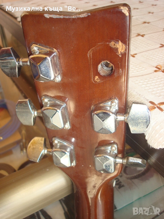 в добро състояние. Забележка: липсва един ключ, едно от пинчетата в долната част - вижда се на снимките и едно от прагчетата е съвсем леко надигнато, което е поправимо. Всичко това е съобразено с цената на китарата. Може да се види в Музикалния магазин в гр. В. Търново над старите хали. Цената е без коментар!