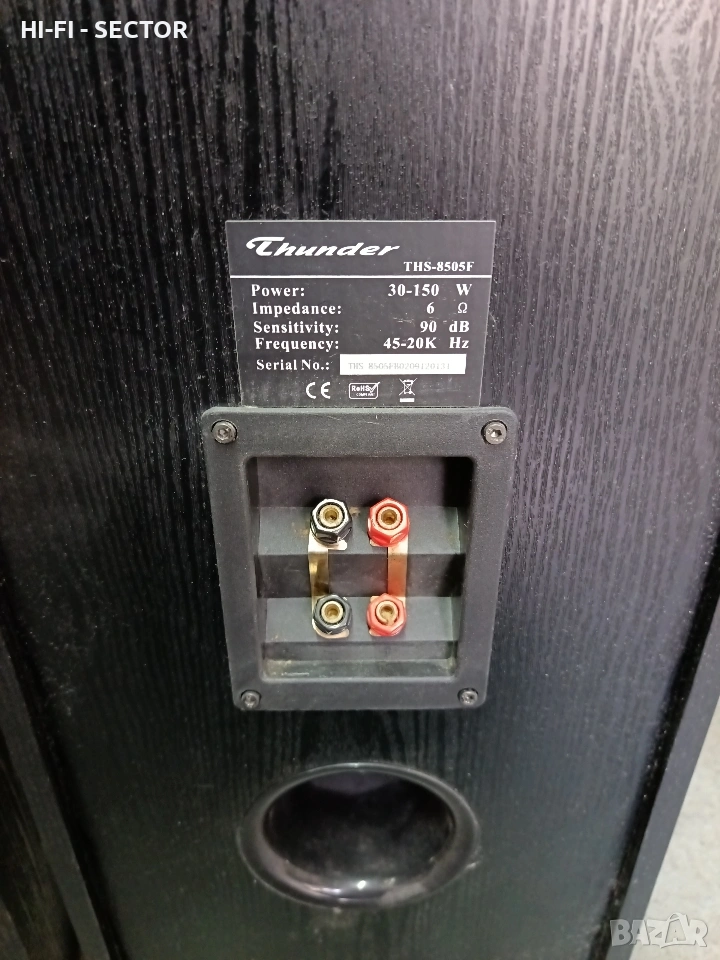 THS 8505 F, 30 - 150 вата, 6 ома, трилентови, заден бас рефлекс, 2 х 8 бас, комбинация от дърво и пиано лак, тонколоните са закупени чисто нови от Технополис, и не са свирили повече от месец, състояние неразличимо от ново, гумени гофри на говорителите, здрави грилове, вземане само от място поради размера им.
