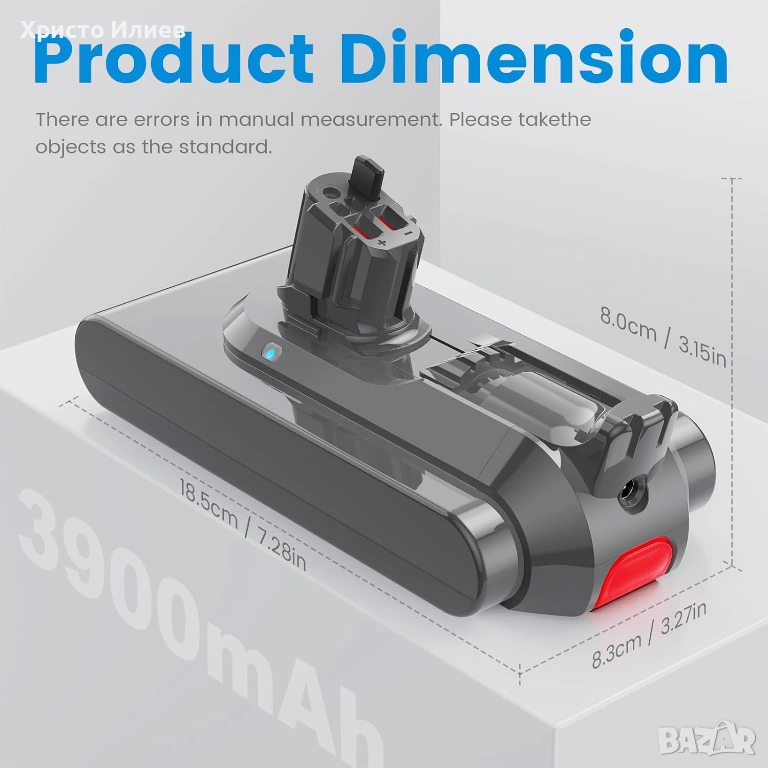 Спецификации на батерията: Тази батерия за Dyson е с капацитет до 3900 mAh; Напрежение: 25,2 V; След интензивна употреба, моля, оставете батерията да се охлади за 5-10 минути, преди да я заредите, за да осигурите нейната издръжливост. Функцията и размерът са същите като на оригиналната батерия.