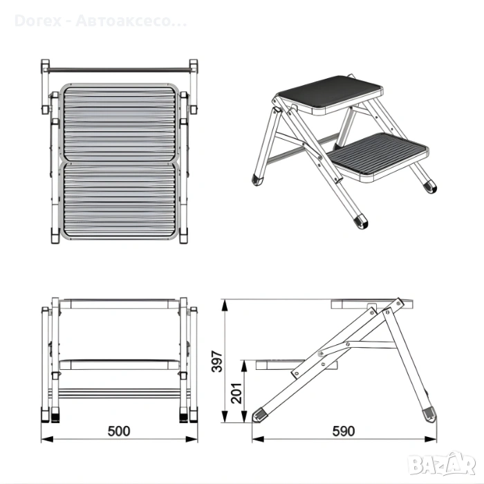 Сгъваема метална стълба с 2 стъпала – стабилна и компактна