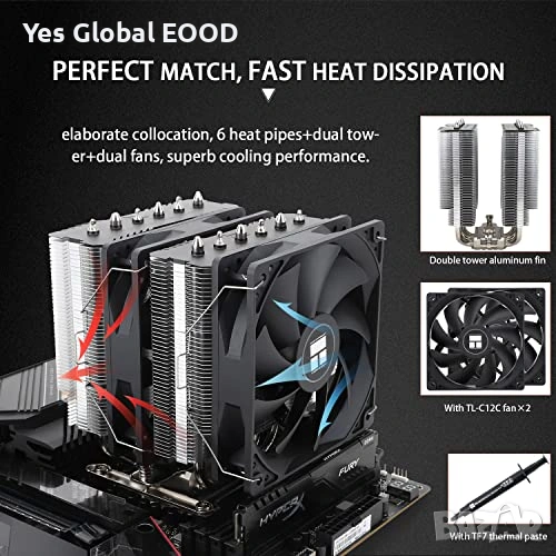 Високопроизводителен въздушен процесорен охладител Thermalright Peerless Assassin 120 SE, предназначен за гейминг и мощни настолни конфигурации. Оборудван с 6 топлинни тръби (heat pipes) и два 120 mm TL-C12C PWM вентилатора за максимално охлаждане и стабилна работа при високо натоварване.