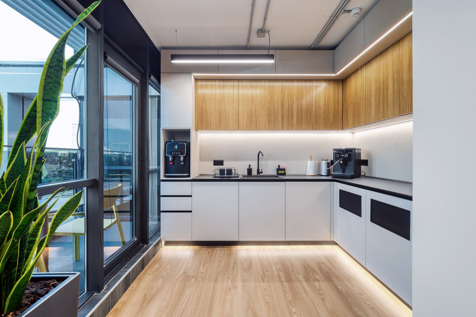 Наемната цена включва - напълно оборудвани работни места, всички консумативи, интернет, почистване, използване на кухня и безплатни напитки (кафе,чай и вода), използване на конферентни зали и споделени пространства, описани по-горе.