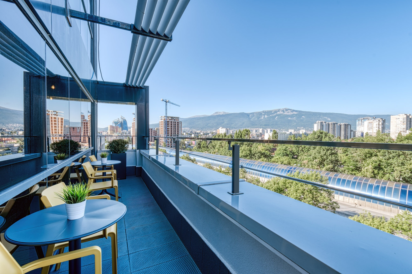 На разположение на наемателите са безплатно ползване на зали за срещи, телефонна кабина, санитарни помещения, кухня на етажа, пространство за релакс с места за хранене и панорамна тераса с гледка към Витоша на 9-ти етаж на сградата.