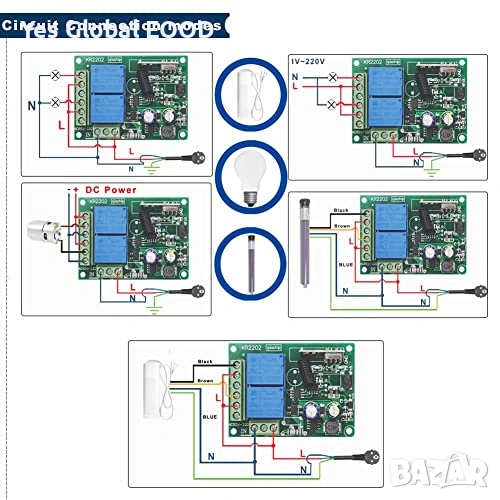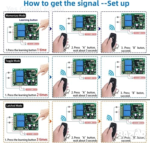 QIACHIP 433MHz RF Реле 2 канала с 4 дистанционни