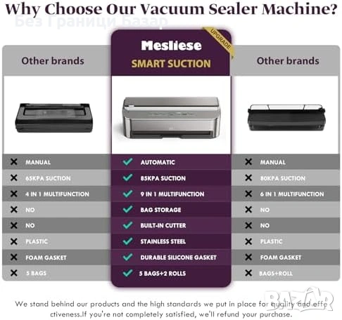 Мощно вакуумиране до 85 kPa с 120W мотор за бързо запечатване