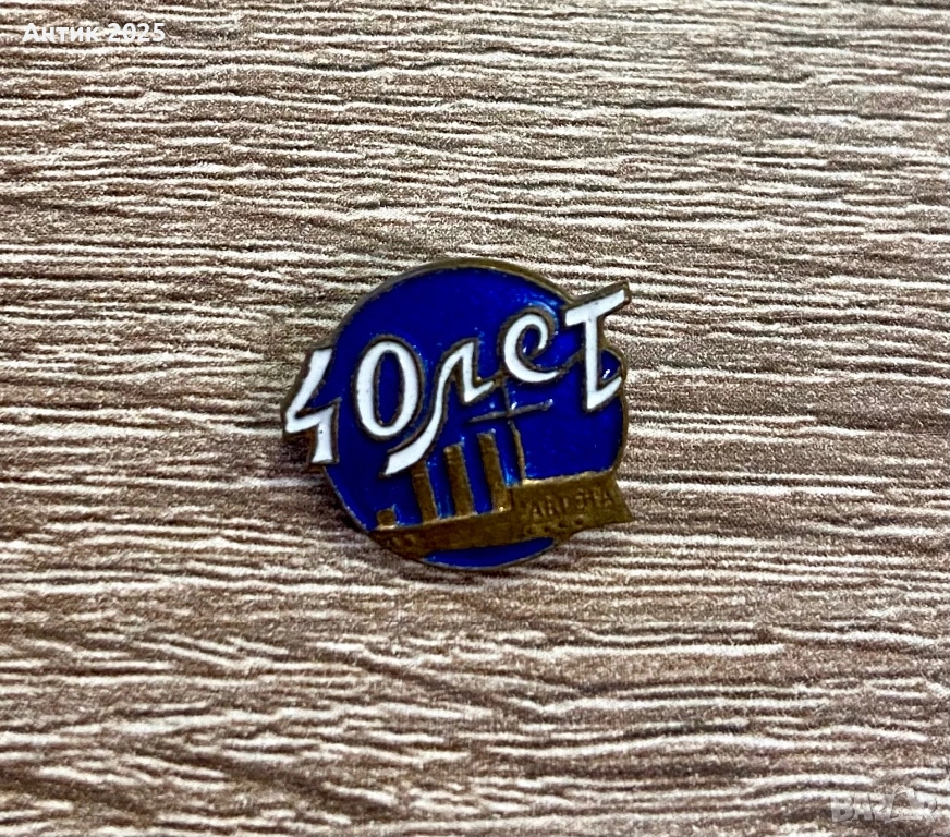 Винтидж значка, посветена на 40-годишнината от Октомврийската революция. На лицевата страна е изобразен легендарният крайцер Крайцер Аврора — един от символите на революцията.