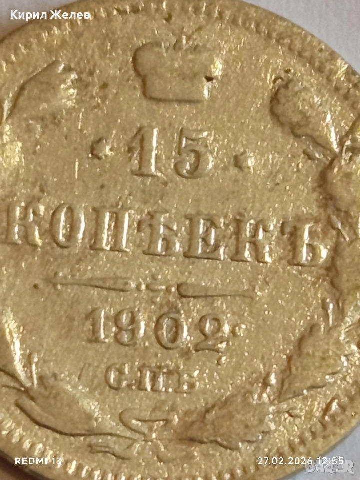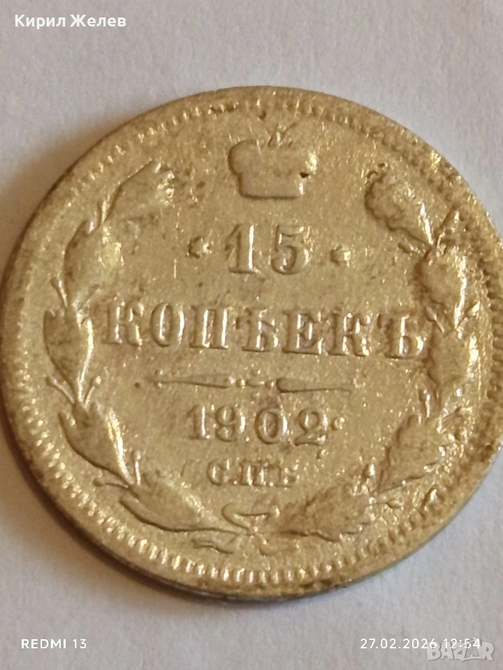 Сребърна монета 15 копейки 1902г. Руска Империя за КОЛЕКЦИОНЕРИ 52898