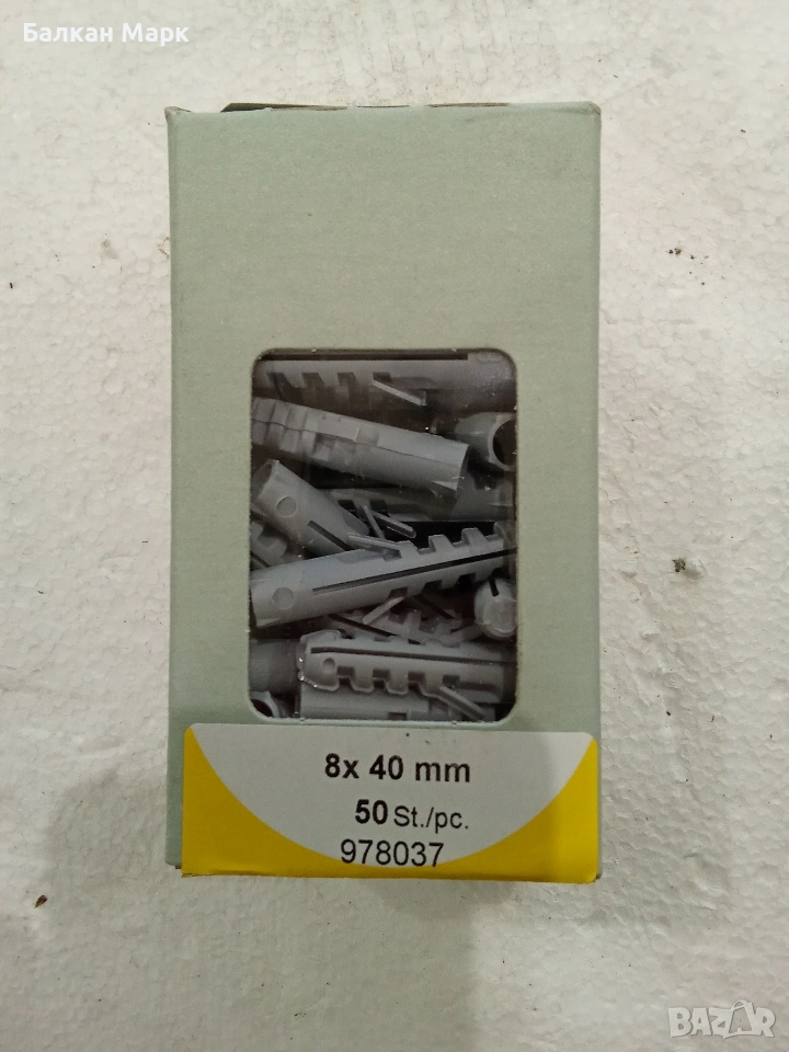 Продавам висококачествени дюбели тип „перка“, част от разнообразна палетирана стока, директен внос от Германия. Идеални за здраво закрепване в бетон, плътни тухли и други строителни материали.