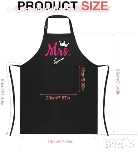 Размер на престилката: 70 × 80 см, с връзки по 80 см от двете страни