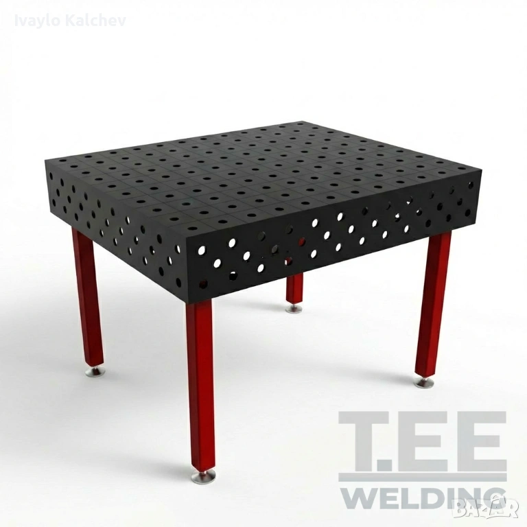 Заваръчната маса е изработена от масивна стоманена плоча с дебелина 8 мм, подсилена с ребра за максимална устойчивост и минимални деформации при натоварване.
