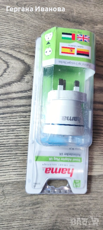 Продавам висококачествен оригинален пътнически адаптер на немската марка Hama (The Smart Solution). Продуктът е нов, в оригиналната си опаковка. Идеален за хора, пътуващи към държави с британски стандарт на контактите.