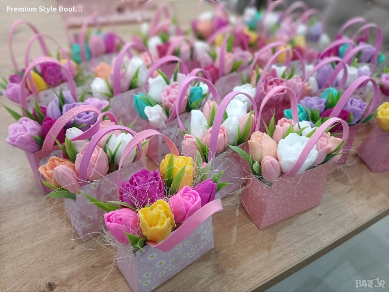кошница със сапунени лалета , снимка 1 - Изкуствени цветя - 53645057 1/1