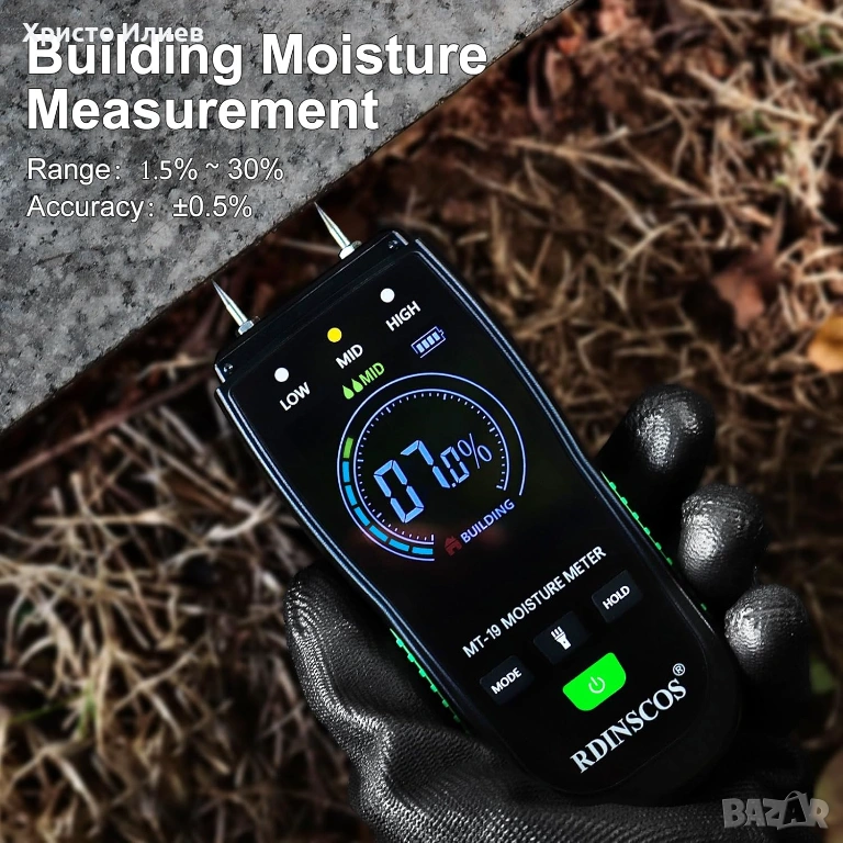 Влагомер с LCD дисплей Безконтактен влагомер RDINSCOS MT19