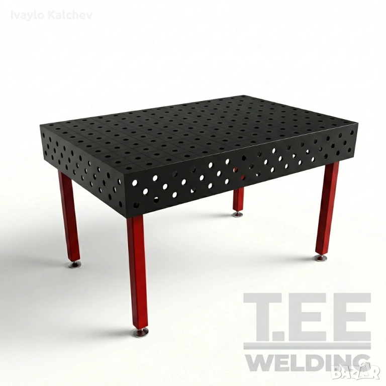 Заваръчната маса е изработена от масивна стоманена плоча с дебелина 8 мм, подсилена с ребра за максимална устойчивост и минимални деформации при натоварване.