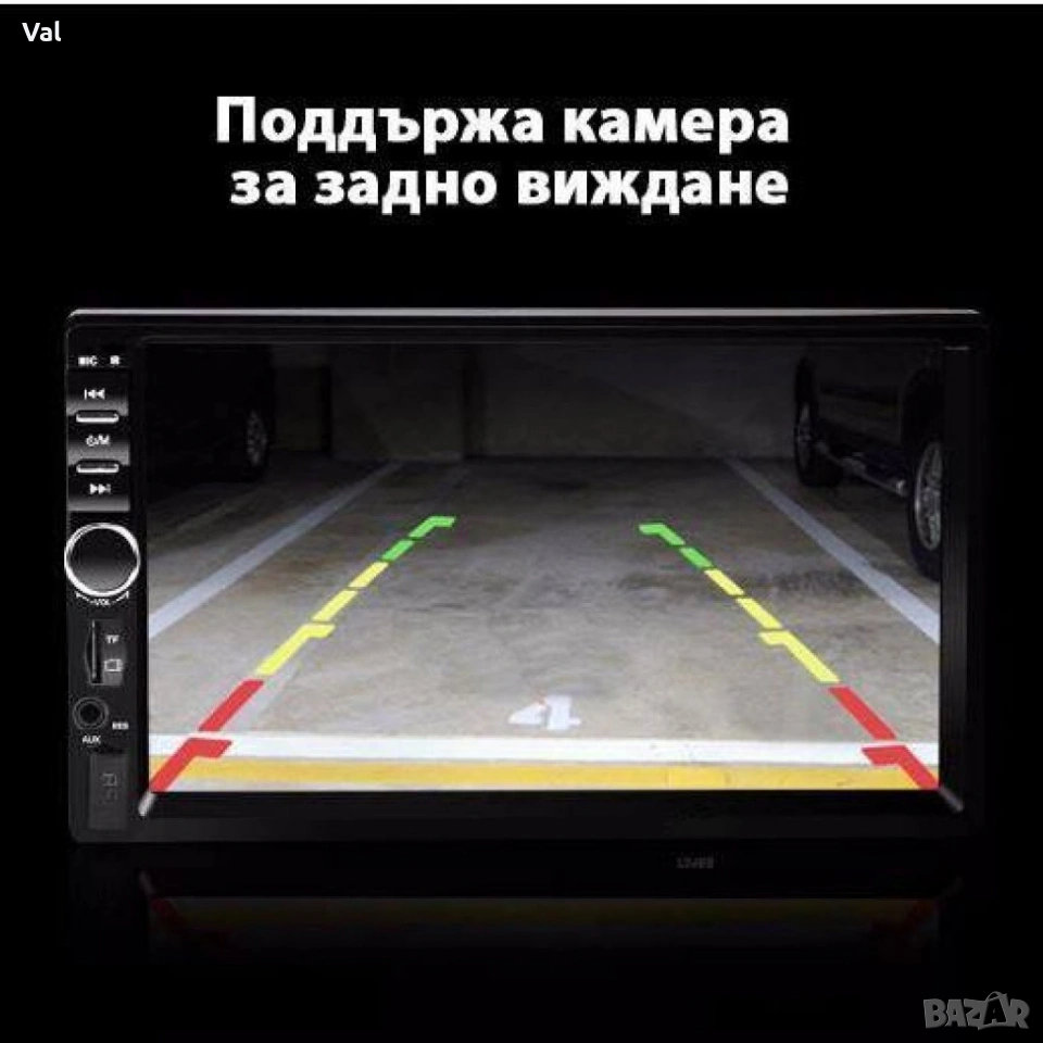 Тип продукт : Мултимедия за кола; Основни характеристики на Мултимедия 7018B; 7-инчов TFT LCD сензорен екран; Резолюция: 800x480 пиксела; Поддържа безжично свързване с телефон за музика и разговори; Поддръжка на MP3 и MP5 формати за аудио и видео възпроизвеждане. Поддържа възпроизвеждане от USB и SD карта. FM радио: .Поддържа 4-канален аудио изход (макс. мощност: 4 х 45W). Входове и изходи: USB порт, слот за SD карта, AUX вход. AV вход за камера за заден ход. RCA аудио изходи за свързване към външни усилватели. Функция за камера за заден ход: Поддържа камера за заден ход (не е включена в комплекта). Автоматично показване на изображение от камерата при включване на задна скорост. Множество формати за възпроизвеждане: MP3, WMA, WAV, RMVB, MP4 и др; 12 месеца гаранция.