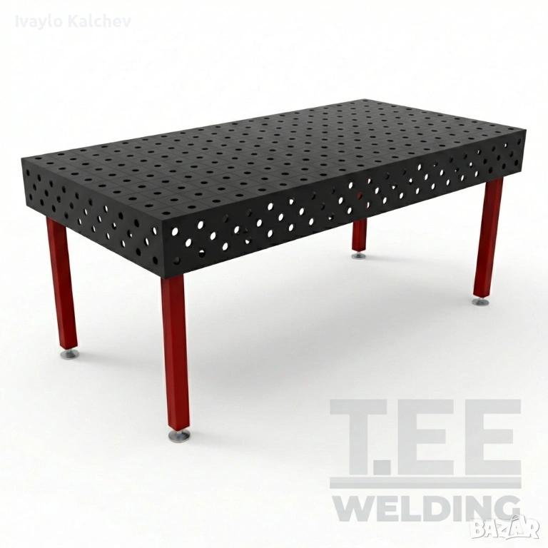 Заваръчната маса е изработена от масивна стоманена плоча с дебелина 8 мм, подсилена с ребра за максимална устойчивост и минимални деформации при натоварване.