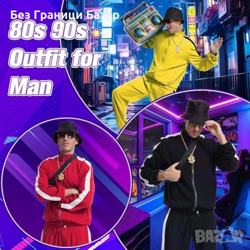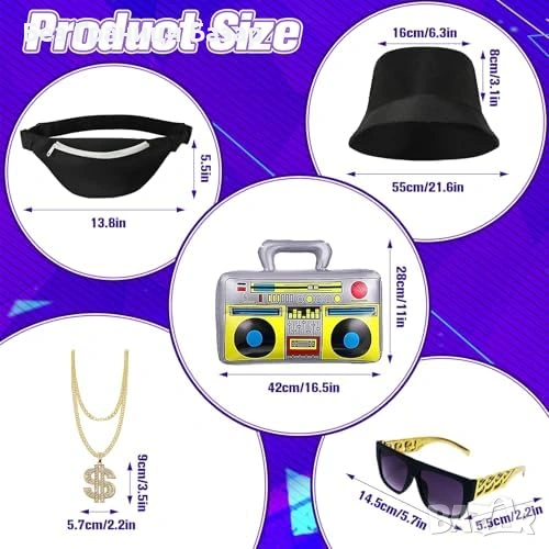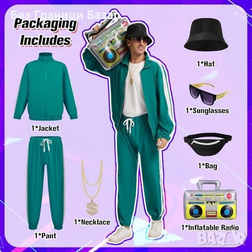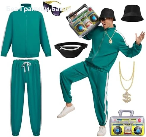 Готова хип-хоп визия за секунди: анцуг + шапка + очила + колие + чантичка + надуваем boombox