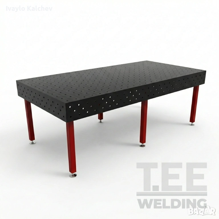Заваръчната маса е изработена от масивна стоманена плоча с дебелина 8 мм, подсилена с ребра за максимална устойчивост и минимални деформации при натоварване.