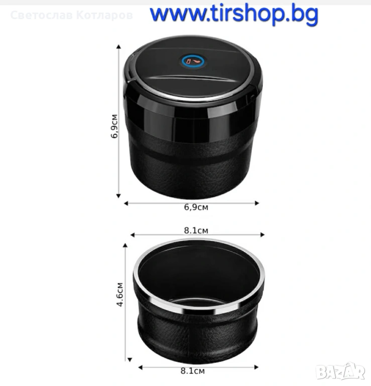 • Компактен и удобен автомобилен пепелник с LED осветление размери височина 75 диаметър 80мм