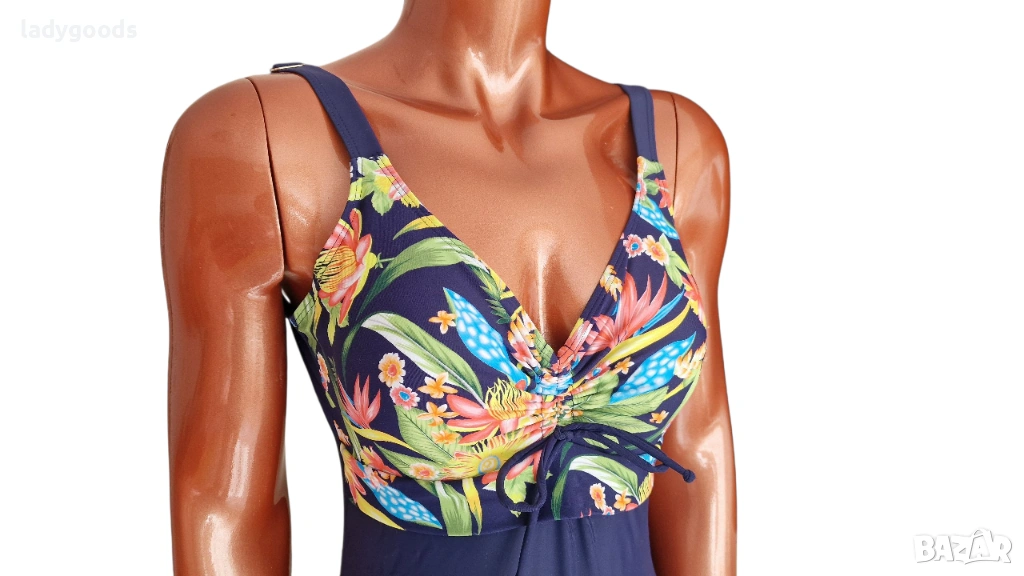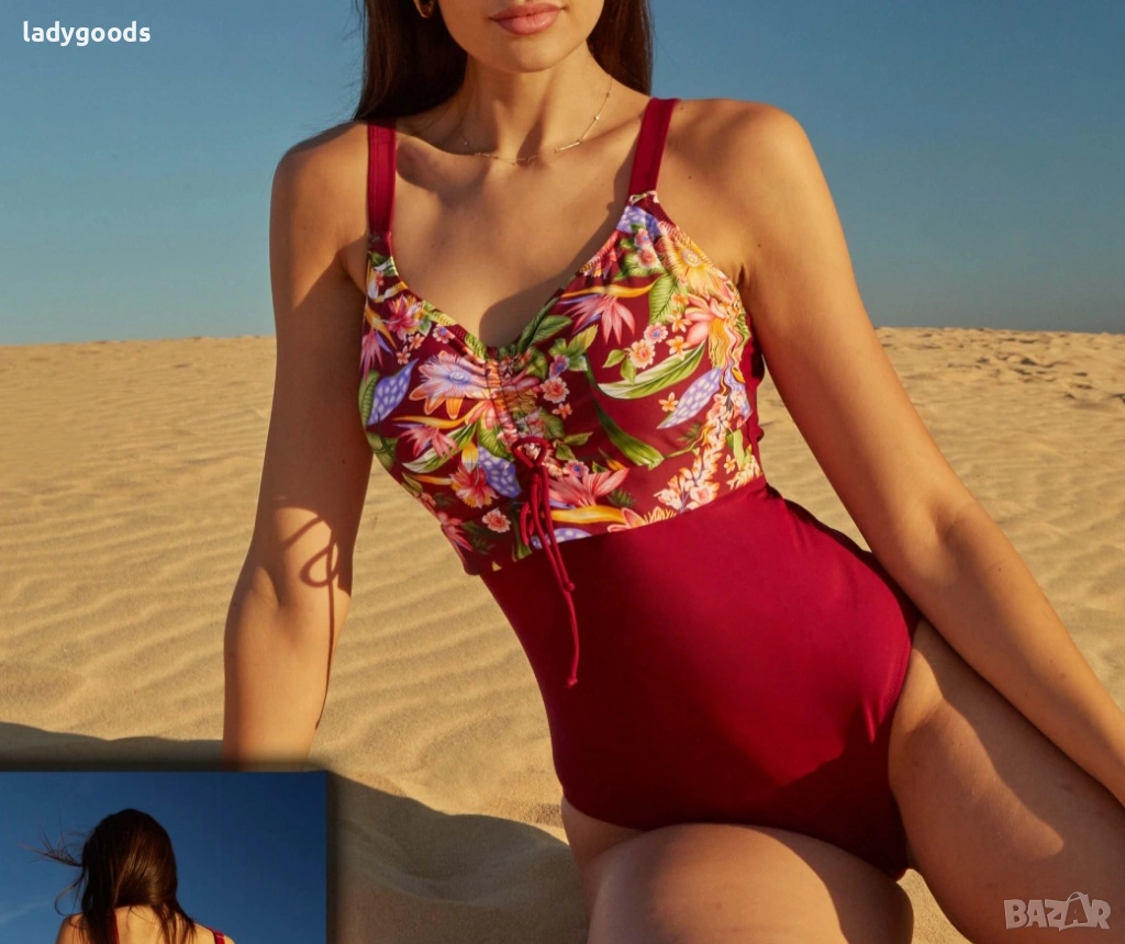 Цял бански костюм, подходящ за чаши С и D, наличен в три десена! Дълбочината на деколтето се регулира(показано на снимките! ).