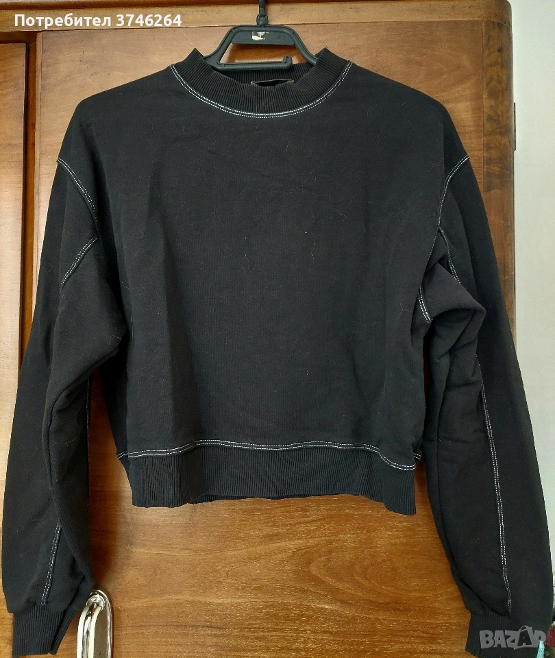 Черна блуза с бял шев pull and bear, снимка 1 - Блузи с дълъг ръкав и пуловери - 53645491 Черна блуза с бял шев pull and bear, снимка 2 - Блузи с дълъг ръкав и пуловери - 53645491 1/2