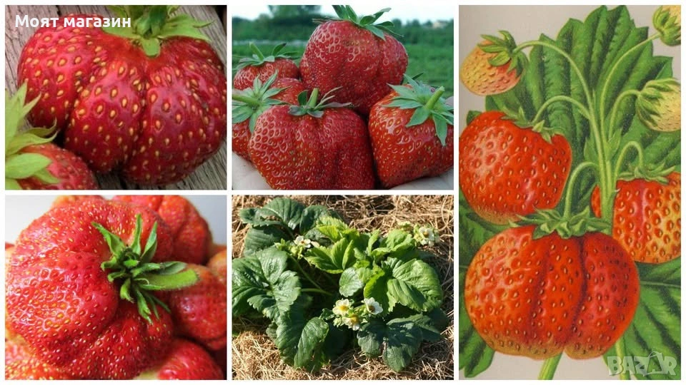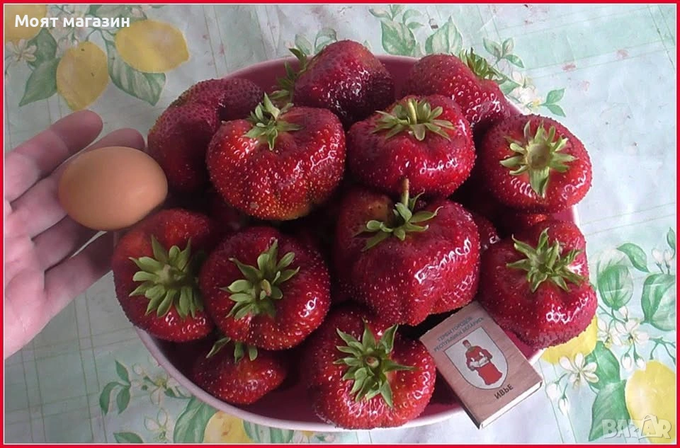 🍓 Ягода „Мадам Муто“ – френски гигант с изключителен вкус Цена: 2,49€ „Мадам Муто“ е стар и утвърден френски сорт ягоди, известен със своите изключително едри плодове, впечатляващ цвят и сочност. Заради внушителния си размер ягодите често са наричани „ягодов домат“. Сортът е средно-късен, с невероятно сладък вкус без киселинност, което го прави истинско удоволствие за прясна консумация. Отделни плодове могат да достигнат и над 100 г. 🌱 Растенията са дълголетни и могат да се отглеждат на едно място до 15 години, което ги прави отличен избор за хоби-градинари и любители на редките и качествени сортове. Основни характеристики: 🇫🇷 Стар френски сорт 🍓 Изключително едри плодове (до 100+ г) 🍬 Много сладък вкус, без киселинност ⏳ Средно-късен сорт 🌿 Дълголетно растение – до 15 години 📦 Среден добив 🍽️ Подходящ основно за прясна консумация ⚠️ Важно: Плодовете са много нежни – сортът не е подходящ за транспортиране и преработка. Идеален избор за тези, които търсят уникален вкус, внушителен размер и истинско градинарско удоволствие. Растенията са в контейнери, което позволява засаждането им да се извършва почти целогодишно. Много от растенията променят вида си през периодите на своята вегетация, но тук в сайта със снимки се представят в най-атрактивния им вид. Повечето снимки в сайта ни покзват как ще изглеждат растенията след определен период и положени необходимите грижи. Моля разгледайте и другите ни растения в сайта. Благодарим че избрахте нас 😊 Тел. 0877977519