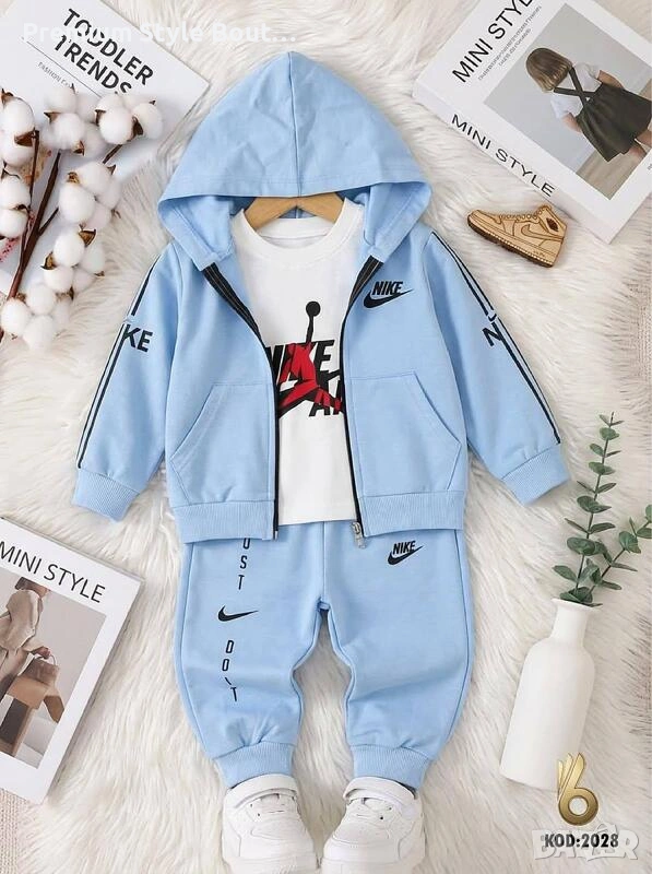 Детски спортен комплект 3 части – Светлосин Стилен и удобен детски комплект от 3 части, подходящ за ежедневие, разходки и детска градина. Моделът включва суичър с цип и качулка, тениска и спортно долнище. Изработен от 100% памук, комплектът е мек, дишащ и щадящ детската кожа 🌿 Материята е приятна на допир и подходяща за целогодишно носене. Светлосиният цвят придава свежа и модерна визия, а спортният дизайн го прави лесен за комбиниране с маратонки. 📋 Характеристики: Комплект: 3 части (суичър + тениска + долнище) Материя: 100% памук Цвят: Светлосин Закопчаване: С цип Качулка: Да Подходящ за: Момче Сезон: Пролет / Есен / Зима Размери: 6 – 9 – 12 – 18 – 24 месеца