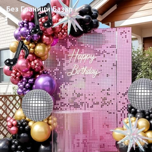 Комплект арка/гирлянд от балони (108 части) за K-pop, disco, 80s/90s, галакси/неон, рожден ден, абитуриентски бал и дипломиране