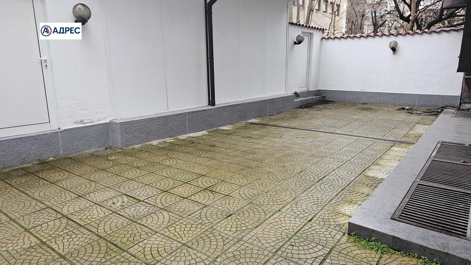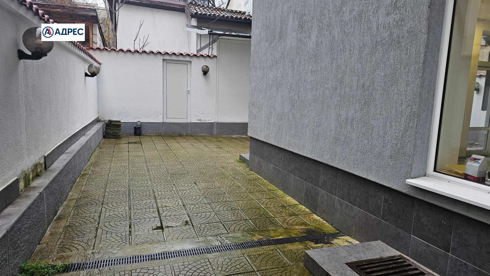 Към обекта има и дворно пространство, подходящо за външни маси, лятна градина или допълнителни търговски цели.