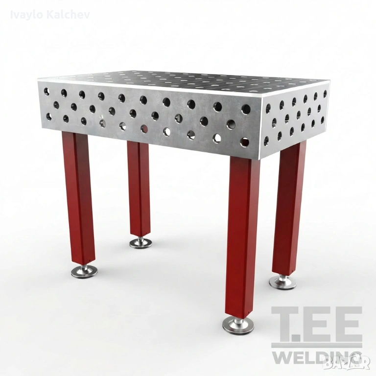 Заваръчната маса е изработена от масивна стоманена плоча с дебелина 12 мм, подсилена с ребра за максимална устойчивост и минимални деформации при натоварване.