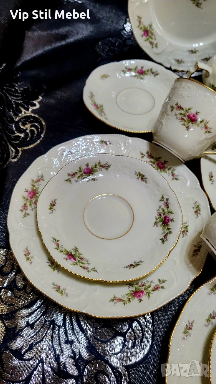 ⚜️6бр. трое сет - чашки с подложни и десертни чинийки/вместимост на чашката 200мл., размер на подложната чинийка 14,5см., размер на десертната чинийка 20см. - 45€/ за 1бр. трио