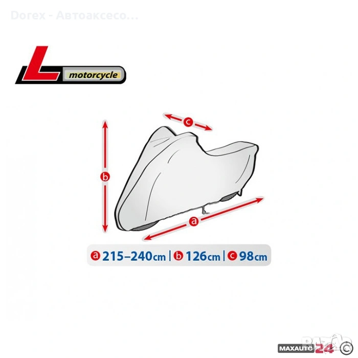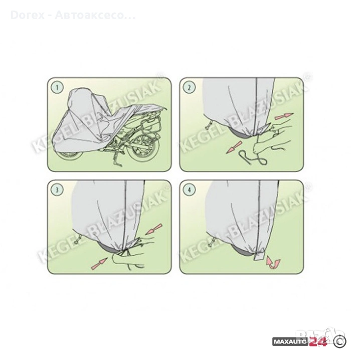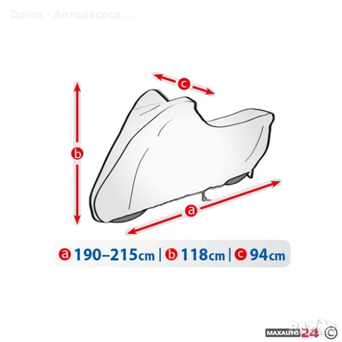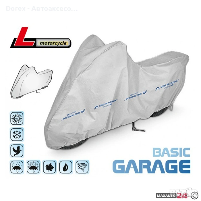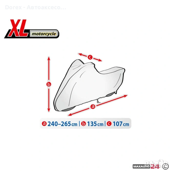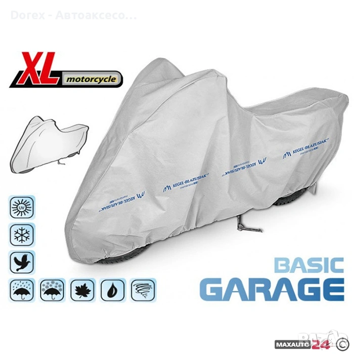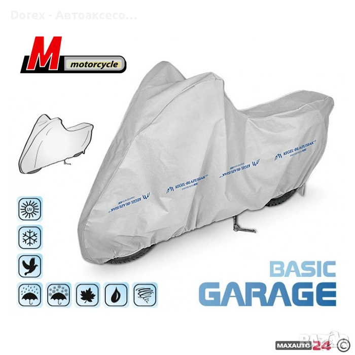 покривало за мотор, което защитава от сняг, дъжд, вятър, UV лъчи, прах, листа, птици и други замърсявания. Мека вътрешна мембрана пази боята и детайлите на мотоциклета, а ластичните ленти и връзките осигуряват стабилно закрепване. Лесно за съхранение и пренасяне.